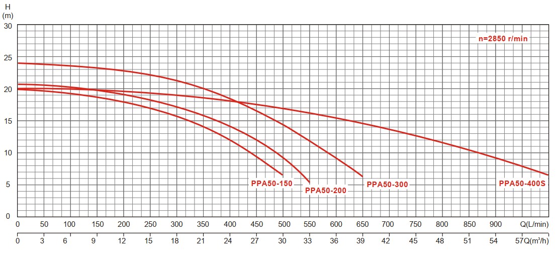 نمودار عملکرد پمپهای سری PPA